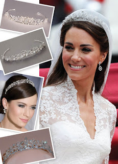 If you want to accessorize in royal style but don't have access to the Queen's extensive collection of tiaras (the one Kate chose was a Cartier "halo" tiara from 1936), check out these lovely options. From top to bottom: Erica Koesler, David's Bridal, Bel Aire Bridal, Ann Leslie Designs. For more headpiece ideas, visit our accessories gallery. —Kim Forrest